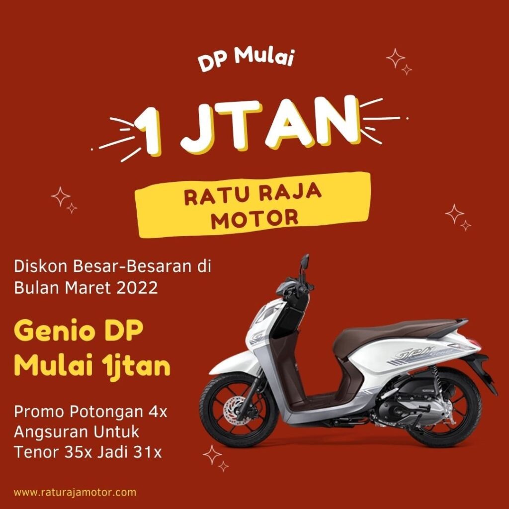Promo bulan maret 2022. Hallo guys,,, untuk bulan ini kita ada promo potongan 4x angsuran lho. Khusus Beat dan Genio, dari tenor 35x menjadi 31 x. So pasti kalian tertarik banget,,, bulan depan belum tentu ada promo bagus seperti ini lagi.