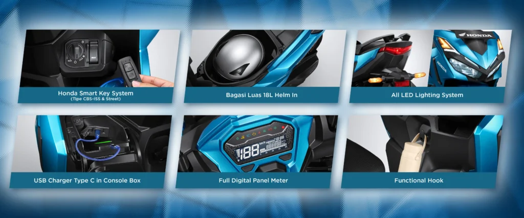 Honda Vario 125 2026 sudah dilengkapi berbagai fitur yang cukup lengkap di kelasnya:
